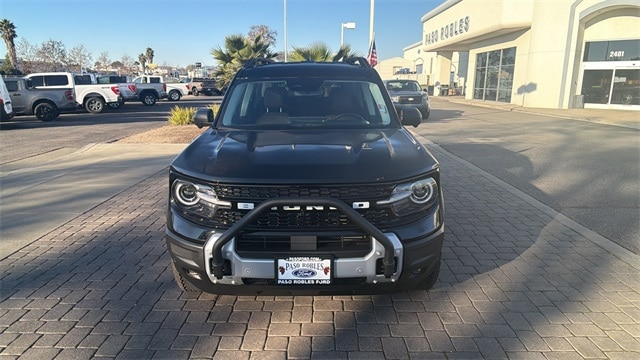 1.5L EcoBoost, 4WD, Shadow Black, 110V/400W AC Power Outlet, 2nd Row Carpeted Seatback, Air Conditioning, Auxiliary Switches & Wiring, B&O Sound System by Bang & Olufsen, Brush Guard, Class II Trailer Tow Pack w/Trailer Sway Control, Connected Navigation, Equipment Group 300A, Fender Tie Downs, Front & Rear Black Bumpers, HD Radio, High Clearance Fender Flares, HOSS 2.0 Off-Road Suspension, Interior Grab Handle, Outer Banks Tech Package+, Recovery Hooks, Sasquatch Outer Banks Package, SYNC 4 w/Enhanced Voice Recognition, Trail Control for Off-Road, Wheels: 17" Ebony Black-Painted Aluminum. 2025 Ford Bronco Sport Outer Banks Shadow Black 4WD